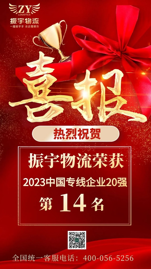 熱烈祝賀振宇物流榮獲2023中國專線企業(yè)20強(qiáng)第14名