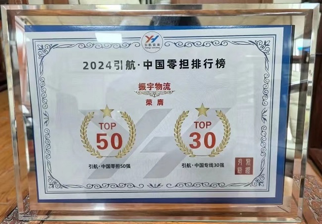 【喜報】振宇物流榮膺《2024引航·中國零擔(dān)50強(qiáng)排行榜、引航·中國專線30強(qiáng)排行榜》!