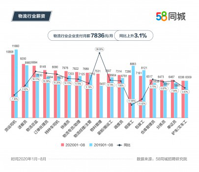 薪酬水平也是物流行業(yè)就業(yè)的重要指標,58同城招聘研究院數(shù)據(jù)顯示,今年1-8月,交通運輸、倉儲和郵政業(yè)支付月薪達到7836元,同比上升3.1%。典型職位中,貨運司機支付月薪第一,達到10808元;送餐員支付月薪排名第二,為9200元;物料管理支付月薪同比上升最快,增幅38%,月薪達到7531元??梢姡锪餍袠I(yè)崗位薪資與崗位技術含量、市場需求、勞動強度密切相關,技術含量高、市場需求大、勞動強度大的崗位收入更高。